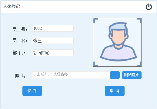 登记用户人像识别信息,可从照片导入,也可直接拍摄。