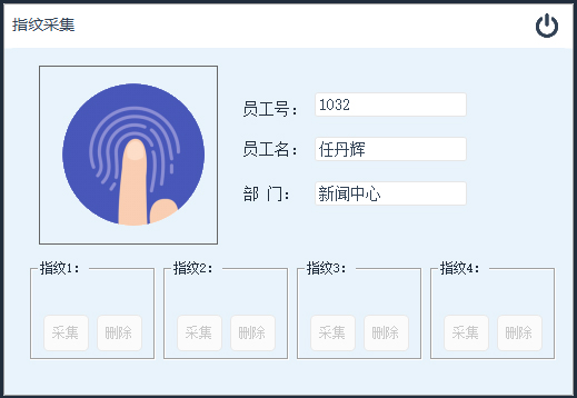 直至在软件左上角白框内显示指纹图,反复三次后(部分用户指纹信息如采集不全需补采,可能会超过3次。),系统将在“采集”按钮上方显示指纹图标表示采集成功。