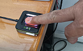 如上图所示,每个用户最多可以登记4枚指纹。点击对应指纹名称下的“采集”按钮然后将手指轻按指纹仪扫描区,下图中发白区玻璃区域。