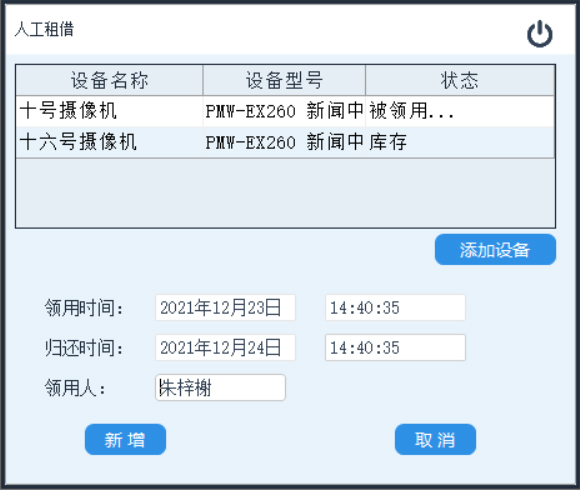 添加租借记录:登记新的设备租借记录。