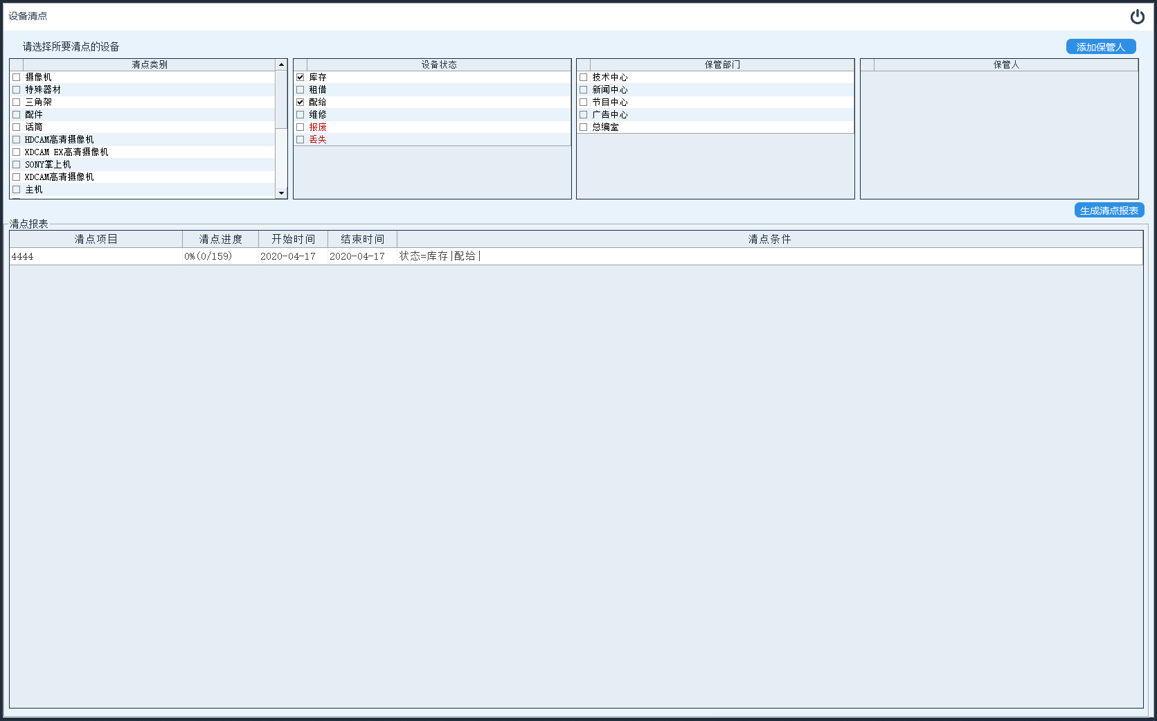 打印:生成及打印本次清点内容的报表。