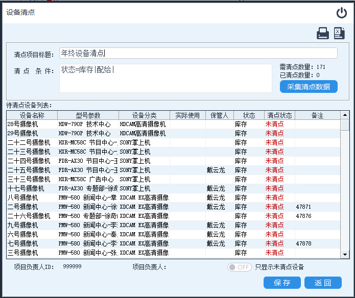 清点技巧:个人物品清点可将数据采集器直接交由保管人,让其自行扫描设备条码,采集完数据后,打印未清点清单进行二次较正。