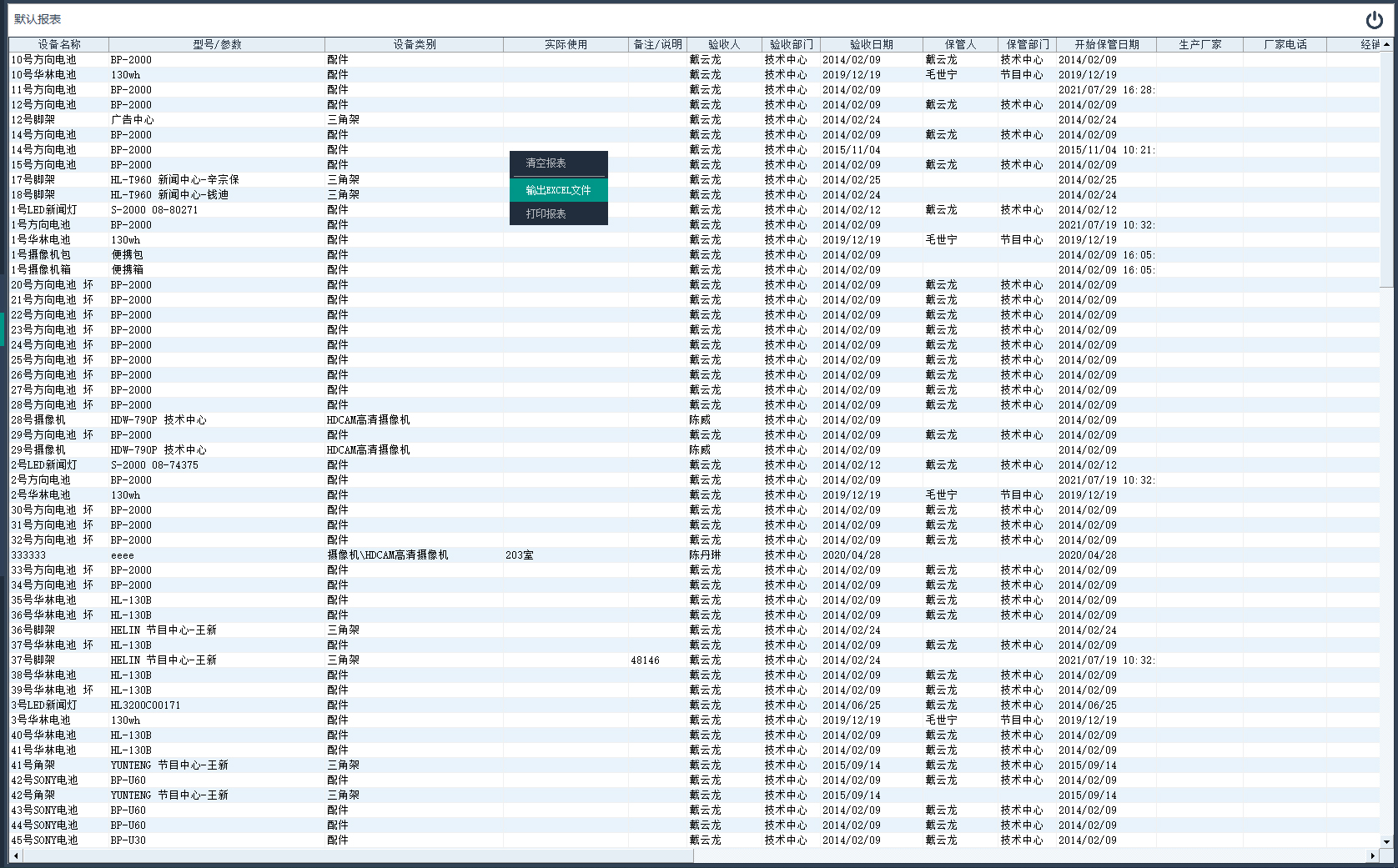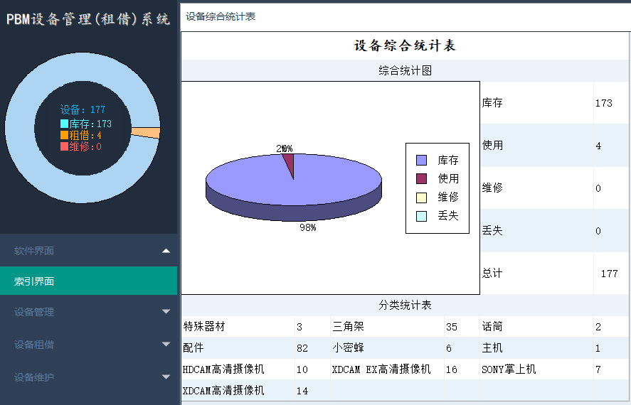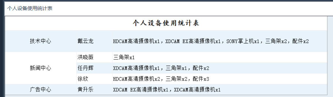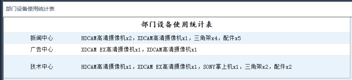 按部门统计设备使用情况。点击索引界面“部门统计表”按钮。