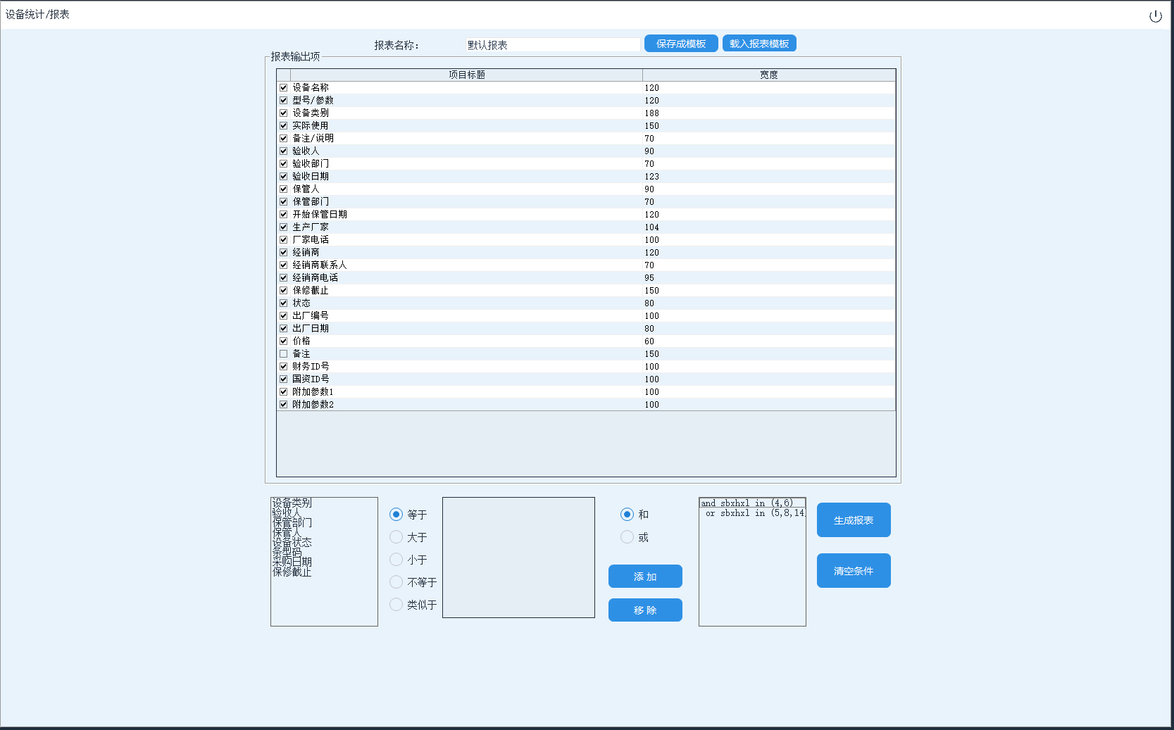 生成报表:点击此按钮,系统将按照设定的筛选条件生成指定输出内容的报表。