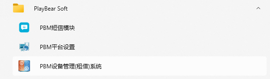 安装完成后,双击桌面软件快捷方式,或点击系统菜单“PlayBear Soft”下“PBM设备管理(租借)系统”按钮,进入系统。
