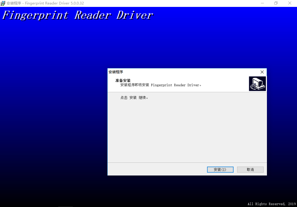 软件安装完成后,系统将自动弹出指纹仪的驱动安装界面。如上图所示 直接点击“安装”按钮。