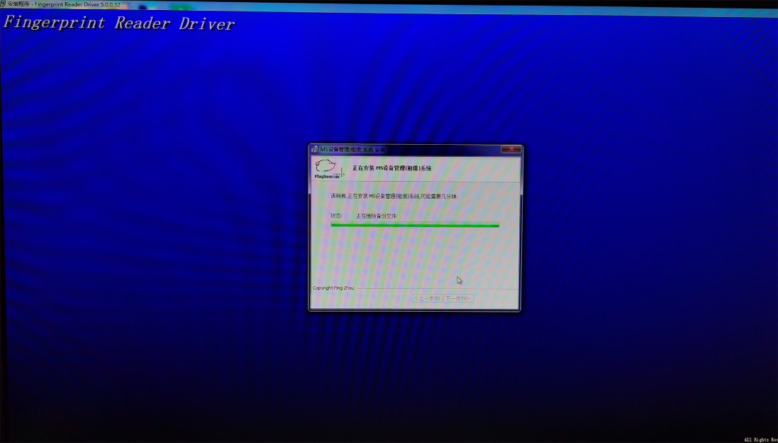 注:部分电脑安装时会出现指纹驱动安装窗口被阻拦的情况(如下图所示),直接点击后方蓝色区域即可弹出指纹安装窗口。