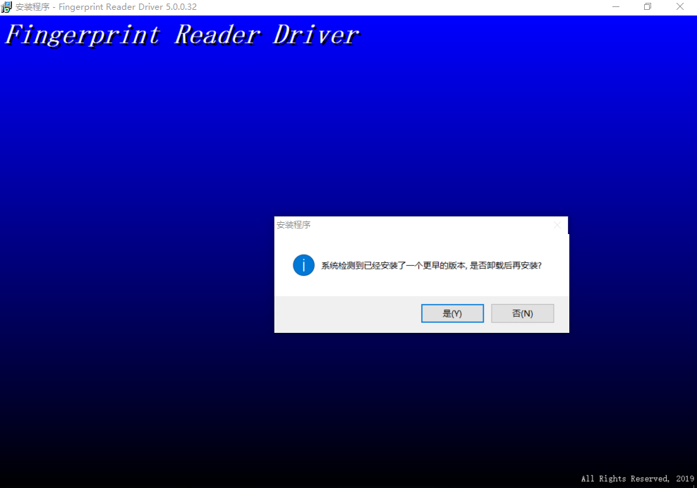 注2:如果系统之前安装过本软件,在安装指纹驱动时会提示卸载旧版本(如上图所示)。点“是(Y)”按钮。