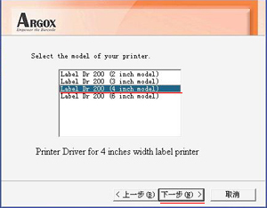 在打印模式选择框内选择“Label Dr 200 (4 inch model)”,“下一步”。