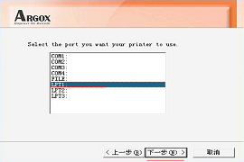 在打印机端口选择框内选定“LPT1”,“下一步”继续。