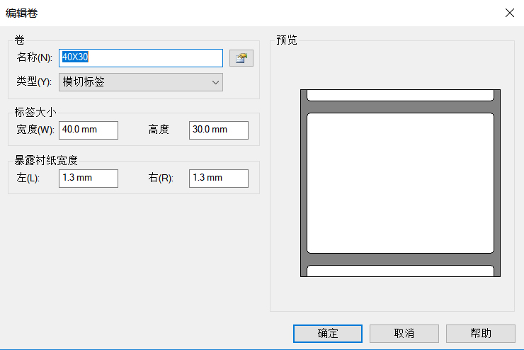 点击“卷”下“新建(W)…”按钮,按照下面参数填写设定好纸张类型。 点击“确定”保存。