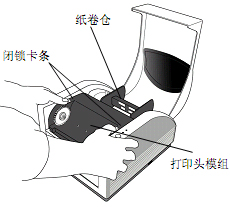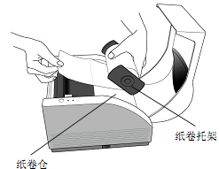 ![]() | 打开机盖,拿出纸卷托架,将纸卷卡入托架。 |