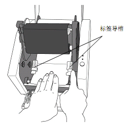 ![]() | 松开打印头,将标签纸穿过“标签导槽”调节导槽宽度以适应不同标签纸,同时按压打印头两端,直到闭锁卡条弹出,盖上机盖,接通电源,按下Feed键。 |