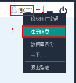 注册方式:点击主界面右上角用户名称,在随后弹出的菜单内选择“注册信息”选项。
