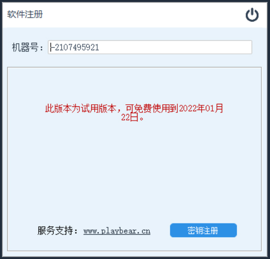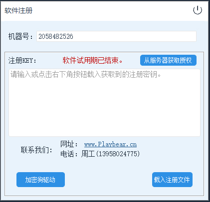 1、复制上面“机器号”后面白框内的内容,发送给经销商。从经销商取得注册码后。点击“密钥注册”按钮。