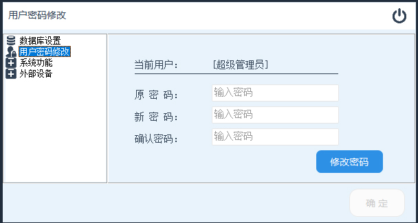 修改当前用户的操作密码,点击图标进入“系统设置”然后在左侧功能列表中选中“用户密码修改”选项。