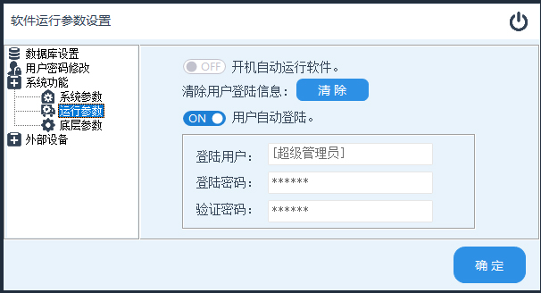 用户自动登陆:开启此选项,并设置好当前用户的登陆密码,系统将在软件运行后,自动以当前用户登陆。