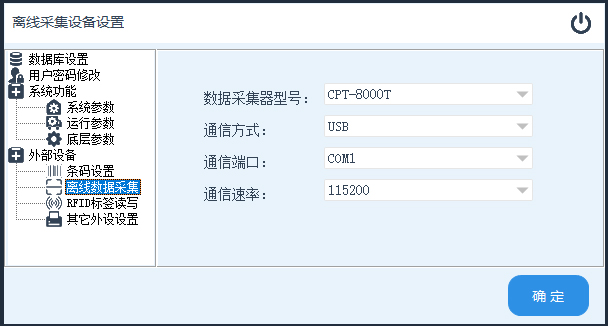 离线数据采集器主要用于设备清点,此功能用于查看及设置离线数据清点设备通信相关参数。